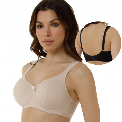 Бюстгальтер без каркасов с мягкой чашкой.Чашки Т-образного членения высоко приподымают грудь и создают округлую наполненную форму.Усиленная бретель снимает нагрузку с плечевого пояса.Широкий стан плотно облегает тело и обеспечивает стабильную комфортную посадку бюстгальтера на фигуре.