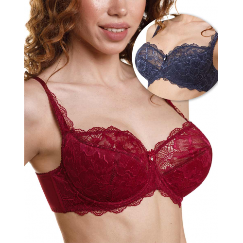 Бюстгальтер на каркасах с полудублированной чашкой.Чашки овальной формы с диагональным членением создают округлую наполненную форму. Нижняя дублированная часть чашки переходит декоративную бретель. Это позволяет достичь надёжной комфортной поддержки при достаточно открытой форме чашки. Что позволяет носить бюстгальтер под одеждой с глубоким вырезом горловины.Широкий стан с боковыми упругими пластинами плотно облегает тело и обеспечивает стабильную комфортную посадку бюстгальтера на фигуре.