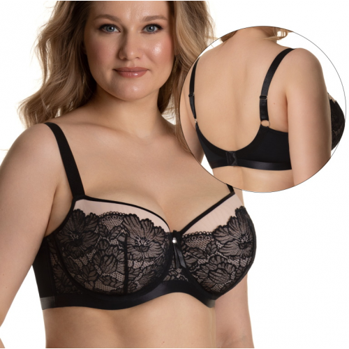 Бюстгальтер балконет на каркасах с дублированной чашкой.Чашки Т-образного членения высоко приподымают грудь и создают округлую наполненную форму.Широкий стан с боковыми упругими пластинами имеет надёжную плотную посадку на фигуре и снимает нагрузку с плечевого пояса, а высокая чашка идеально поддерживает грудь даже при интенсивных движениях. Широкая атласная эластичная лента по низу стана дополнительно обеспечивает стабильность посадки и придаёт модели изысканный шарм.Ширина бретелей зависит от размера.