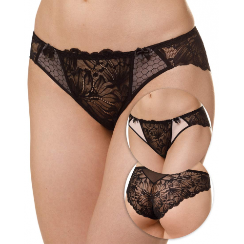 Трусы слипы из эластичного кружева и эластичной сетки.Отсутствие резинок на задних участках срезов ножек позволяет носить трусы под тонкой облегающей одеждой.Модель имеет посадку средней высоты.
