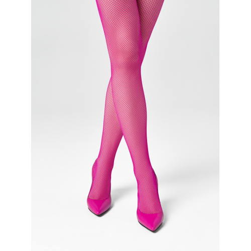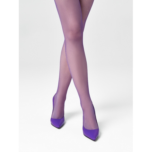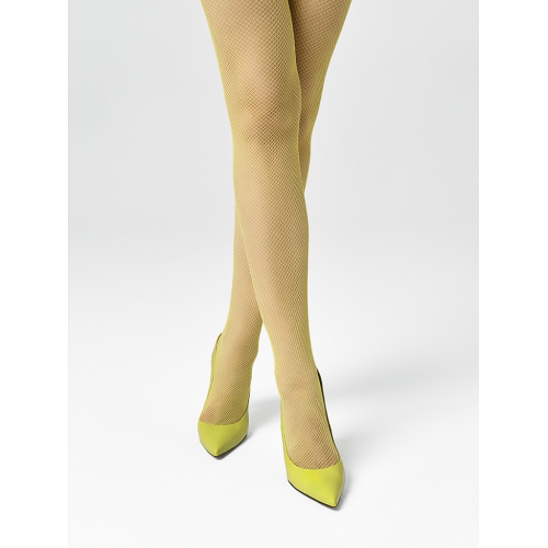 Эластичные колготки в мелкую сеточку с ажурным поясом, без швов, с гигиеничной ластовицей и укрепленным мыском.