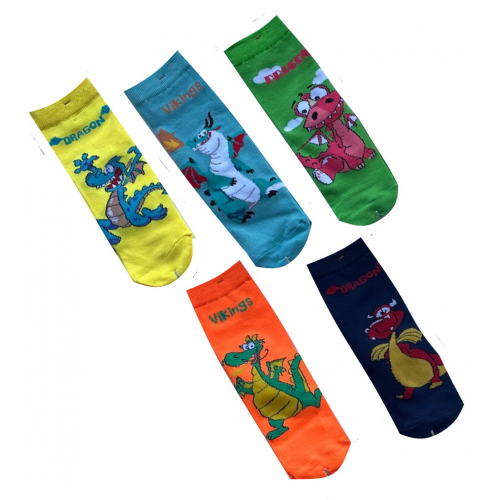Хлопковые детские носки .. Модель украшена ярким рисунком "Веселые драконы"