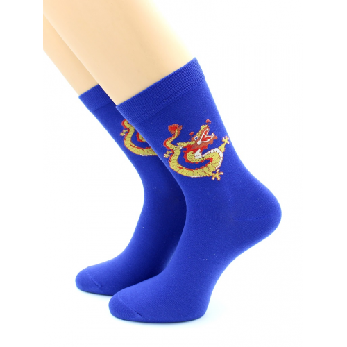 Хлопковые мужские носки с широкой комфортной резинкой. С новогодним рисунком "Желтый дракон"
