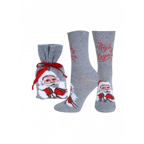 Носки к новому году в необычной упаковке в форме новогоднего мешочка, станут прекрасным подарком.