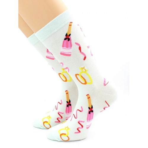 Хлопковые женские носки с комфортной резинкой. Рисунок "Свадебное шампанское"