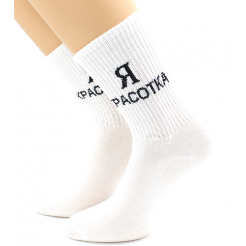 Хлопковые женские носки с широкой комфортной резинкой. Надпись "Я красотка"