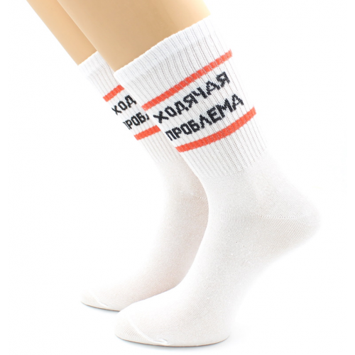 Хлопковые женские носки с широкой комфортной резинкой. Надпись "Ходячая проблема"