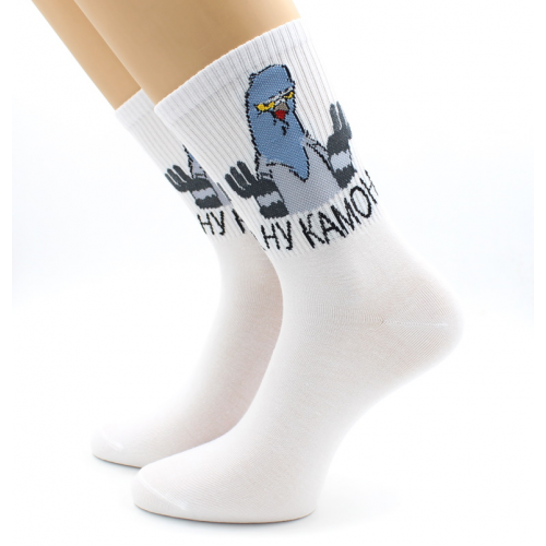 Хлопковые носки унисекс с широкой комфортной резинкой. Надпись " Ну камон"