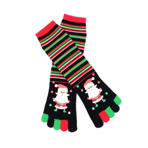 Носки унисекс с пальчиками, рисунок Дед Мороз, полоски