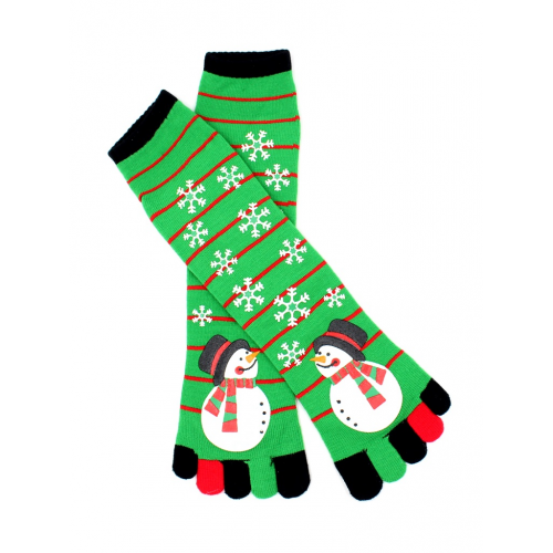 Носки унисекс с пальчиками, рисунок "Снеговик и снежинки"
