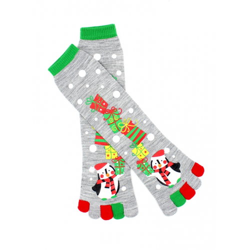 Носки унисекс с пальчиками, рисунок "Пингвин с подарками"