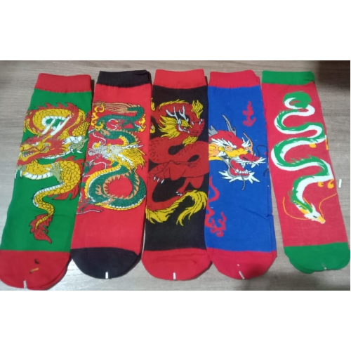 Хлопковые женские носки с широкой комфортной резинкой. С новогодним рисунком "Китайский Дракон"