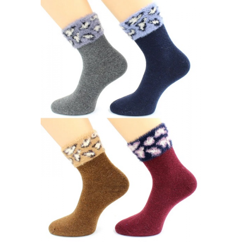 Носки женские, пуховые с опушкой, с леопардом из искусственного соболя.