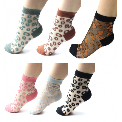 Носки женские стеклянные высокие, с серебрянным люрексом, "Леопардовые"