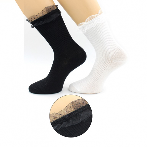 Носки женские ВИП лапша, рюша на резинке. Состав : 75% хлопок, 23% полиамид, 2% эластан
